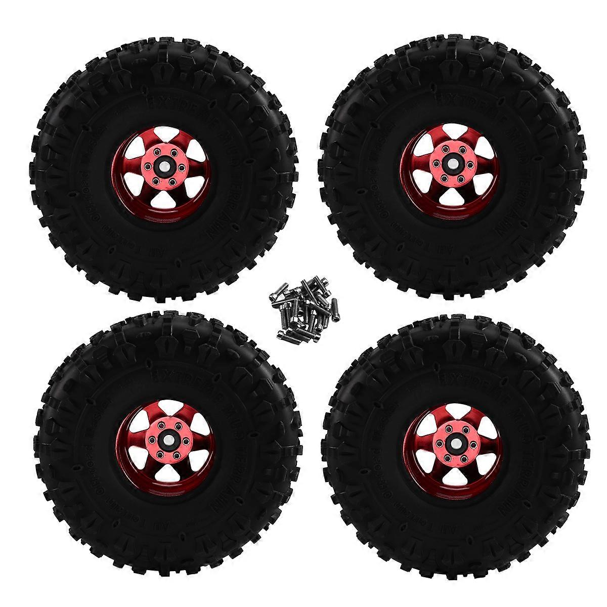 4pcs 122mm 1.9 Inch Metal Beadlock Wheel Rim Rubber Tire Set for 1/10 RC Crawler Car TRX4 D90 D110 Axial SCX10 Red