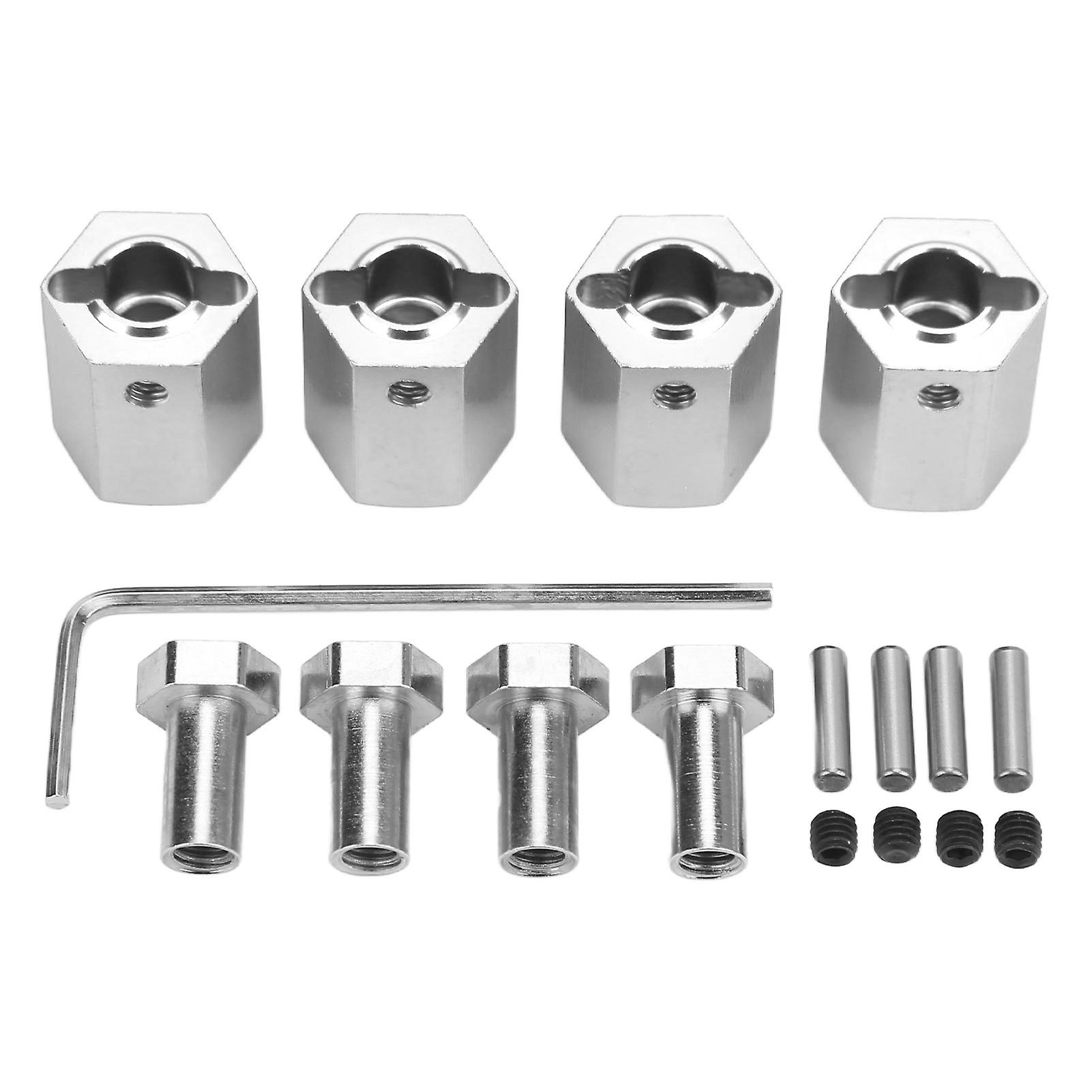4Pcs 12mm Hex Wheel Hubs Adapters Replacement Aluminum Alloy RC Car Parts with Wrench for 1/10 Remote Control Car Silver
