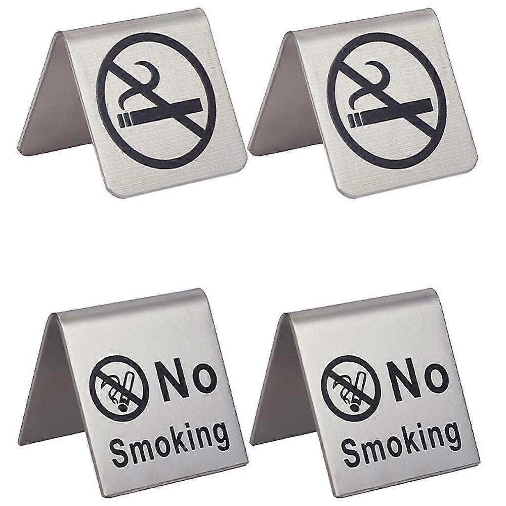 4Pcs 2 Styles Stainless Steel No Smoking Public Signs Stand Stainless Steel Color 48~48.5x49.5~50x42.5~50mm 2pcs/style
