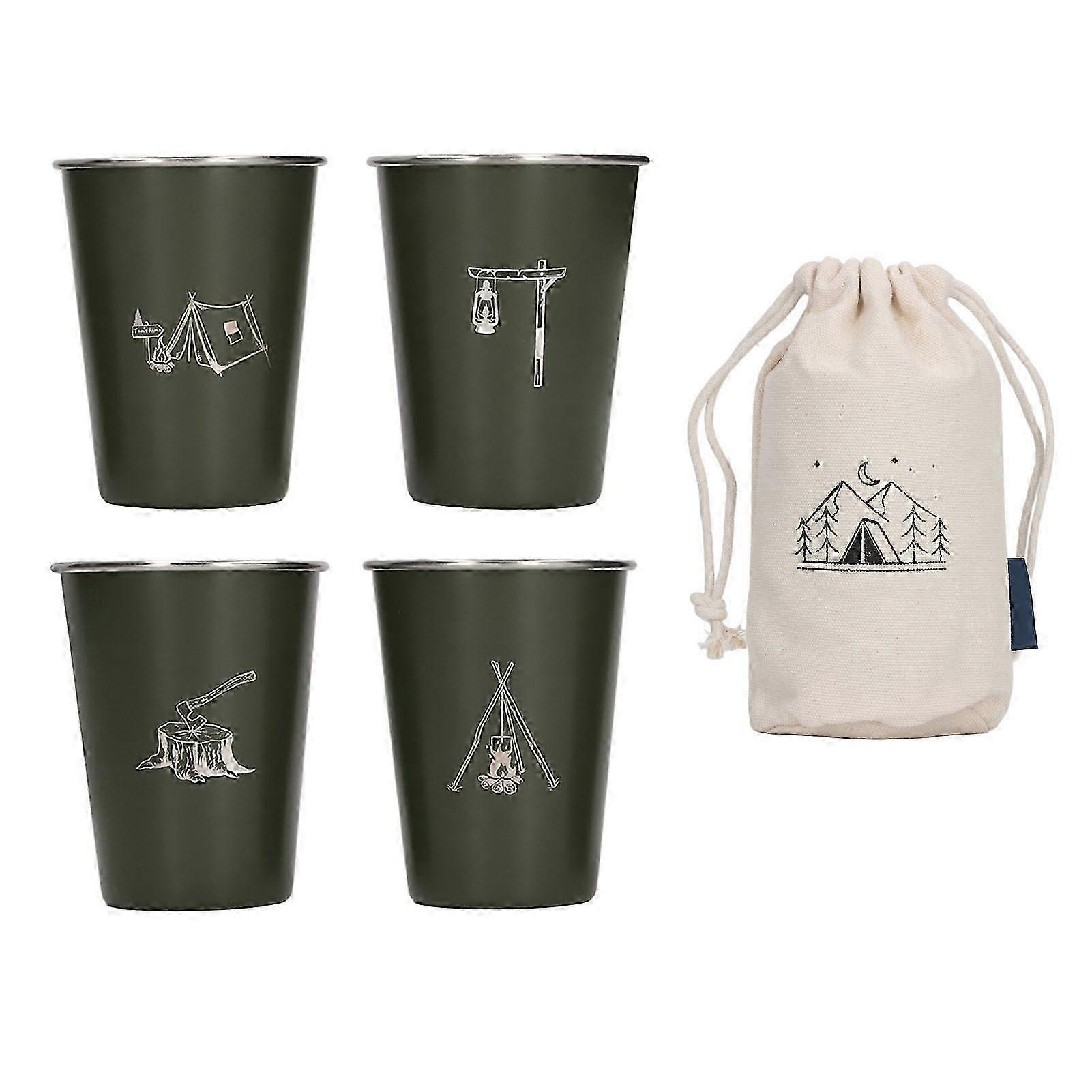 4 Pcs 350ml 304 Stainless Steel Water Cup Coffee Mug Bottle for Barbecue Beer Travel Outdoor OD Green