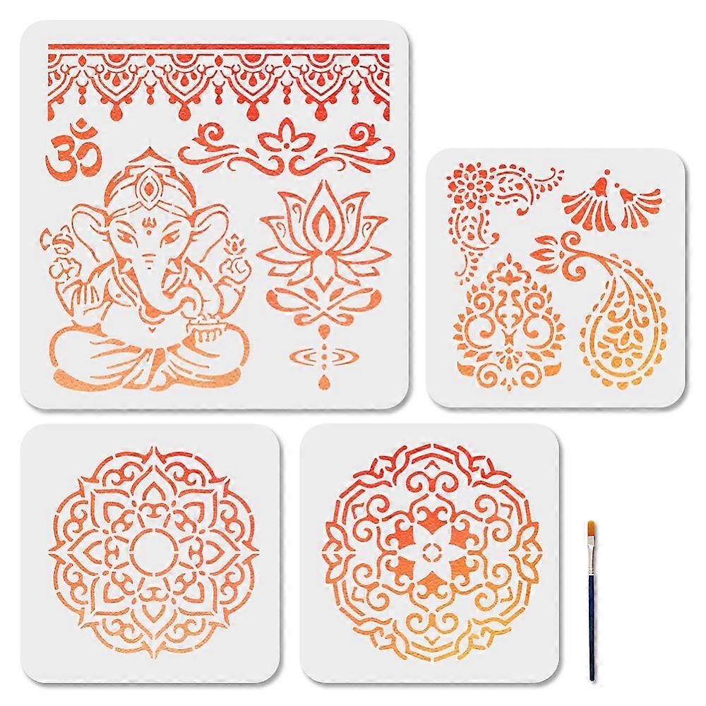 4Pcs 4 Styles Indian Style PET Hollow Out Drawing Painting Stencils for DIY Scrapbook Photo Album Mixed Shapes 200~300x200~300mm 1pc/style