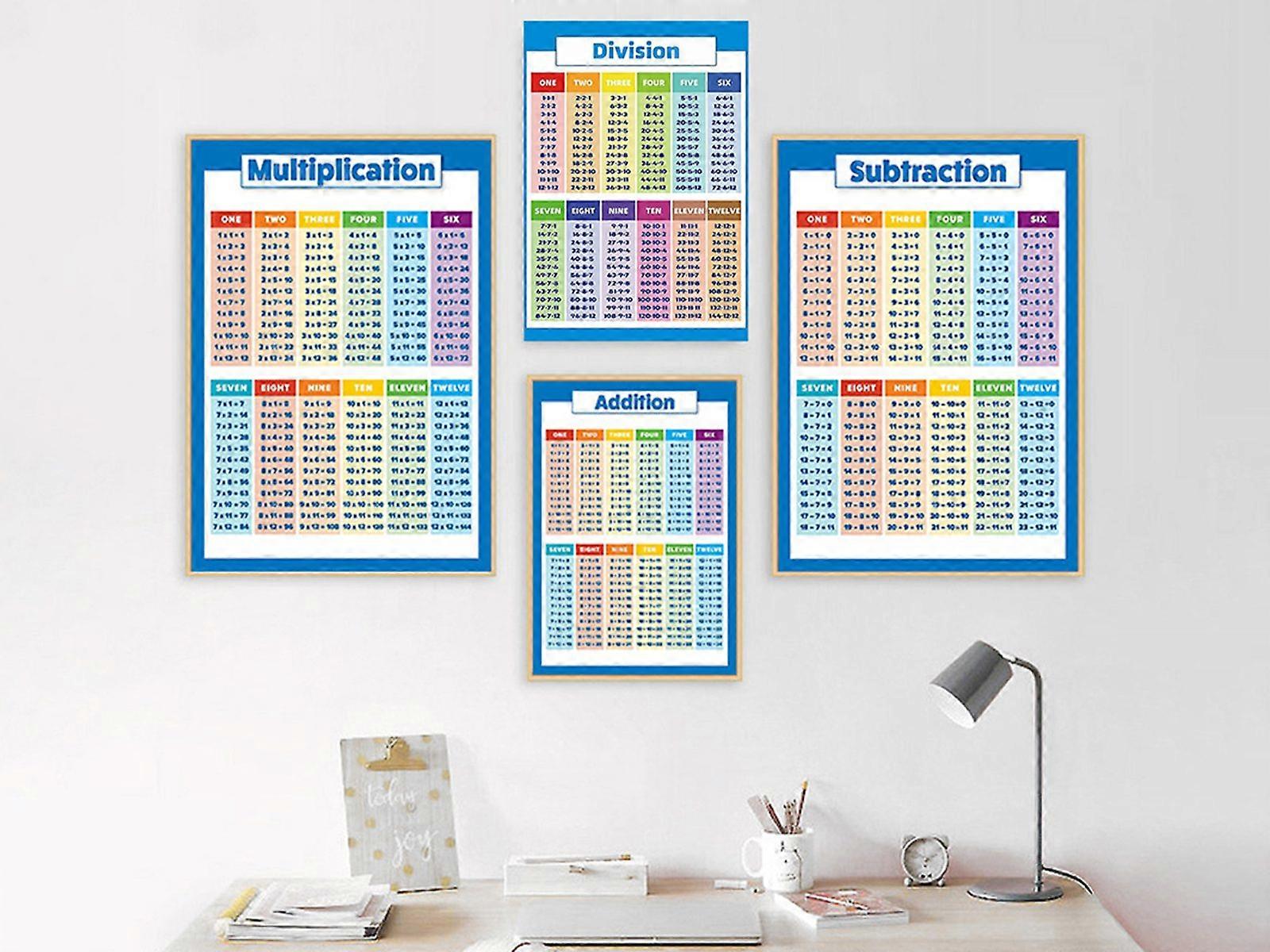 4Pcs 40x28cm Multiplication Educational Times Tables Maths Wall Chart Poster