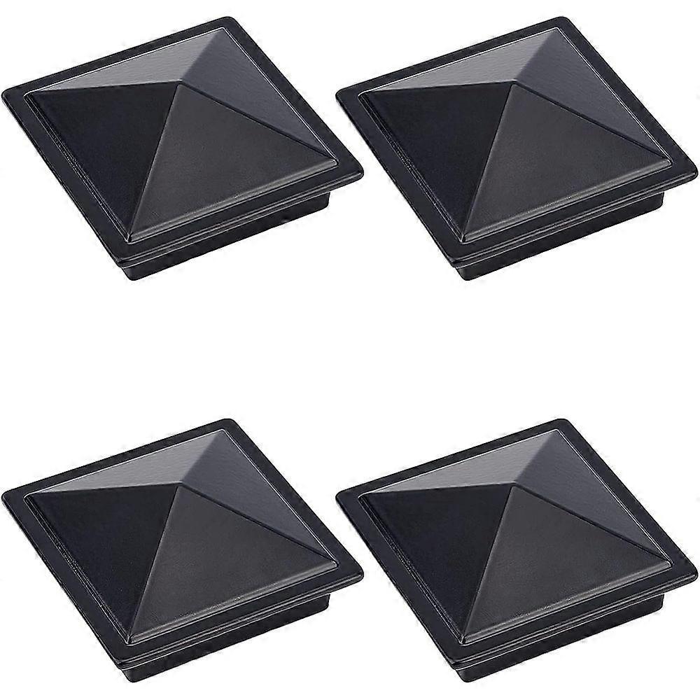 4Pcs 5x5cm Aluminium Black Fence Post Caps Pyramid Post Cap Cover Fence Pipe Cap for Protecting Square Wood Post Outdoor Fence Accessories