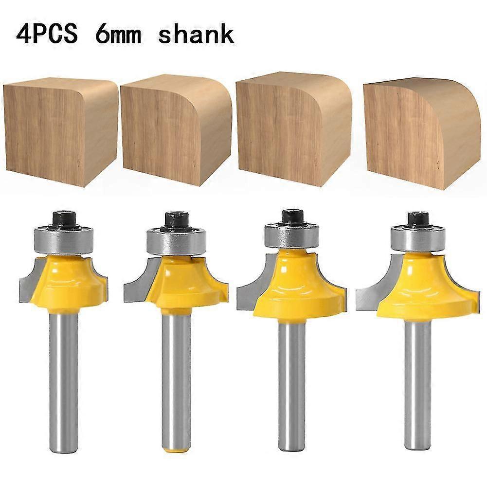 6mm Shank Rounded Over Bit, 4PCS Rounded Corner Edge-forming Bit Set Woodworking Milling Cutter Tools for Cutting, Threading, Chamfering