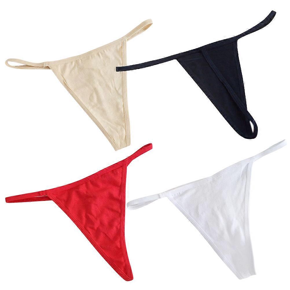 4 Pcs T Shape Pure Cotton Panties Low Waist Underwear Sexy Belt Panties for Women Lady Black/White/Red/Beige, Each Color 1pc, Size M