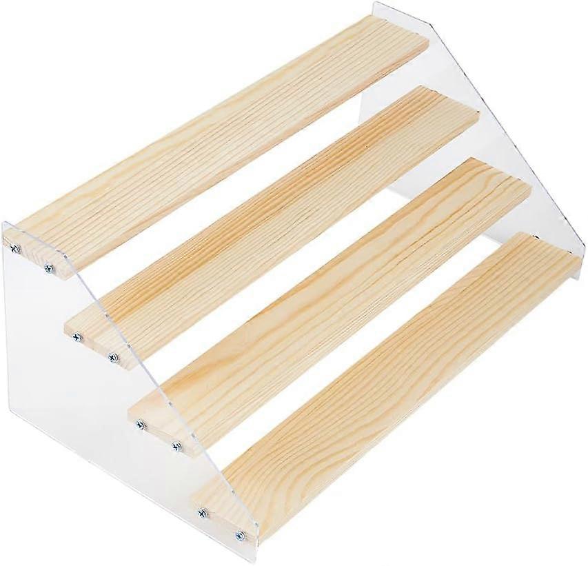 4 Tier Acrylic Wood Display Riser Rectangle Minifigures Organizer Cupcake Stand Wood Perfume Organizer Nail Polish Holder Rack for Cupcakes Perfumes C