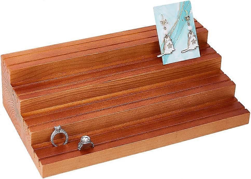 4-Tier Wood Earring Display Stand Tiered Earring Card Display Holder Peru Jewelry Card Display with Groove Jewelry Showcase Racks for Showing Retail J