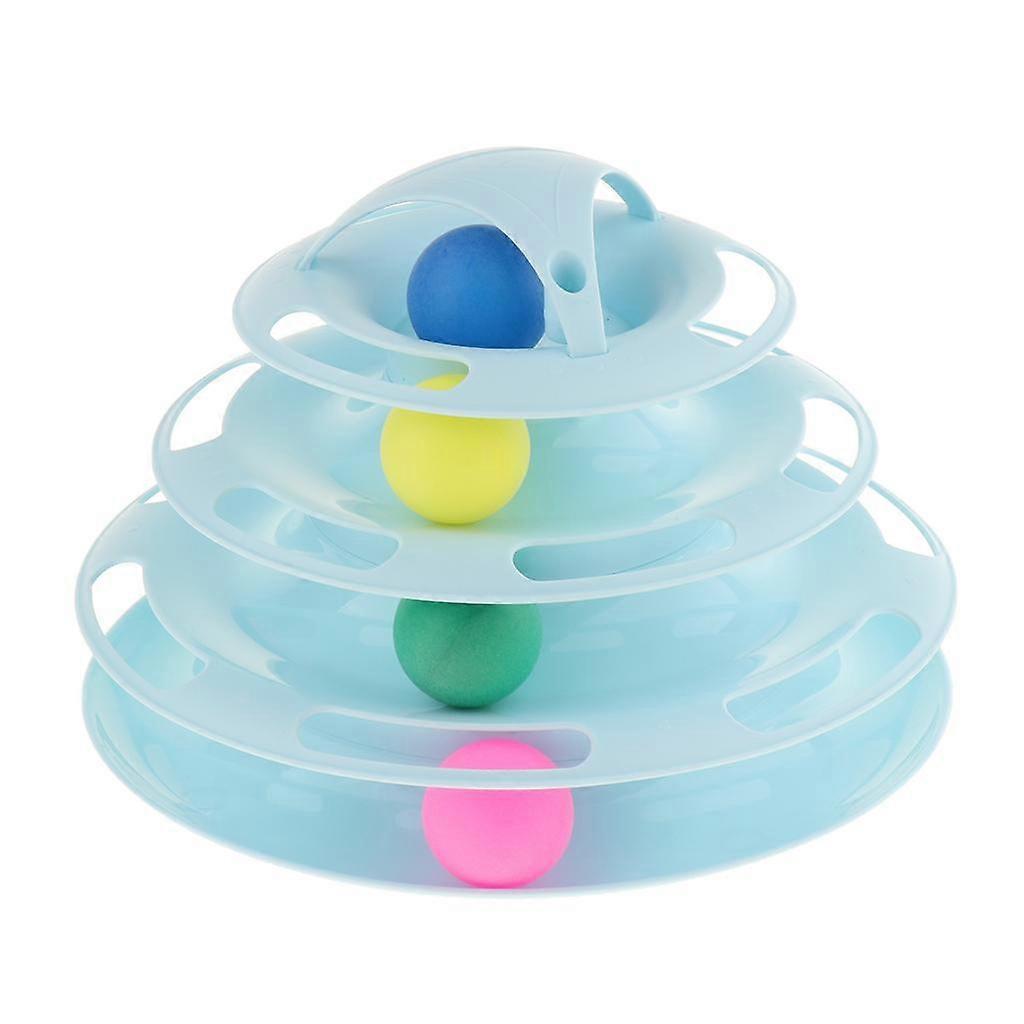 Four Layers Pet Cat Toys Turntable Intelligence Training Ball Tray Blue