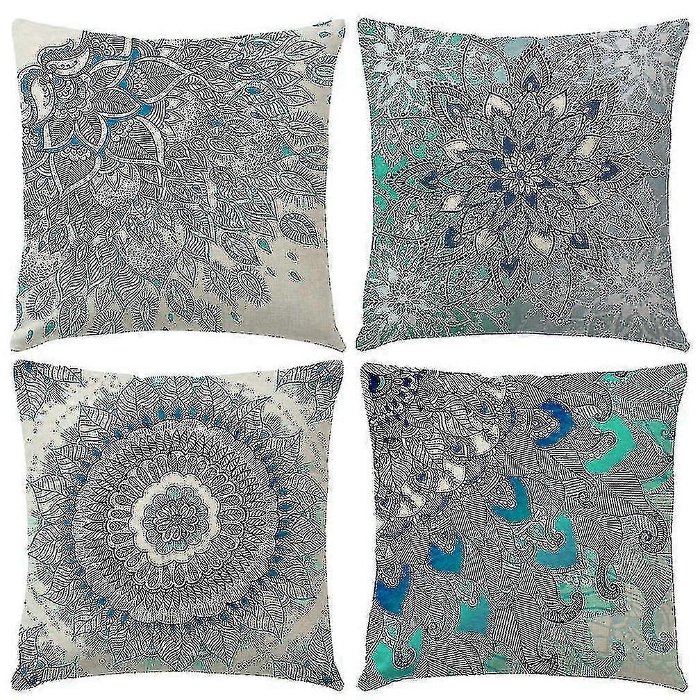 Set Of 4 Mandala Throw Pillow Covers Bohemian Decorative Square 18 X 18 Inch 45 X 45 Cm Boho Cushion