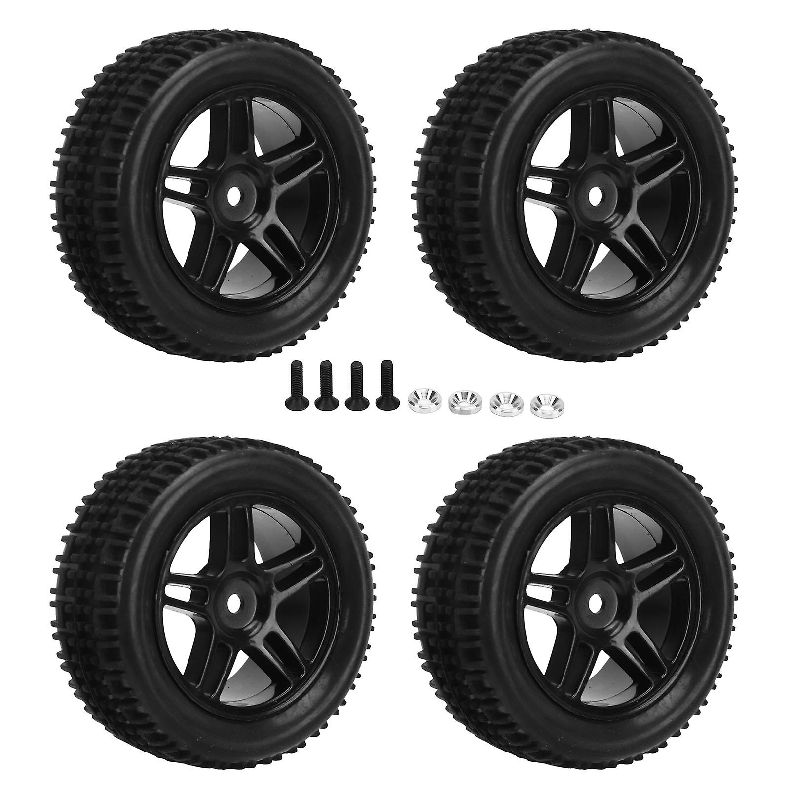 4 pcs RC Tires 12mm Rims and Rubber Tires Set Replacement RC Tires and Wheels Set for 1/16 RC Car Black