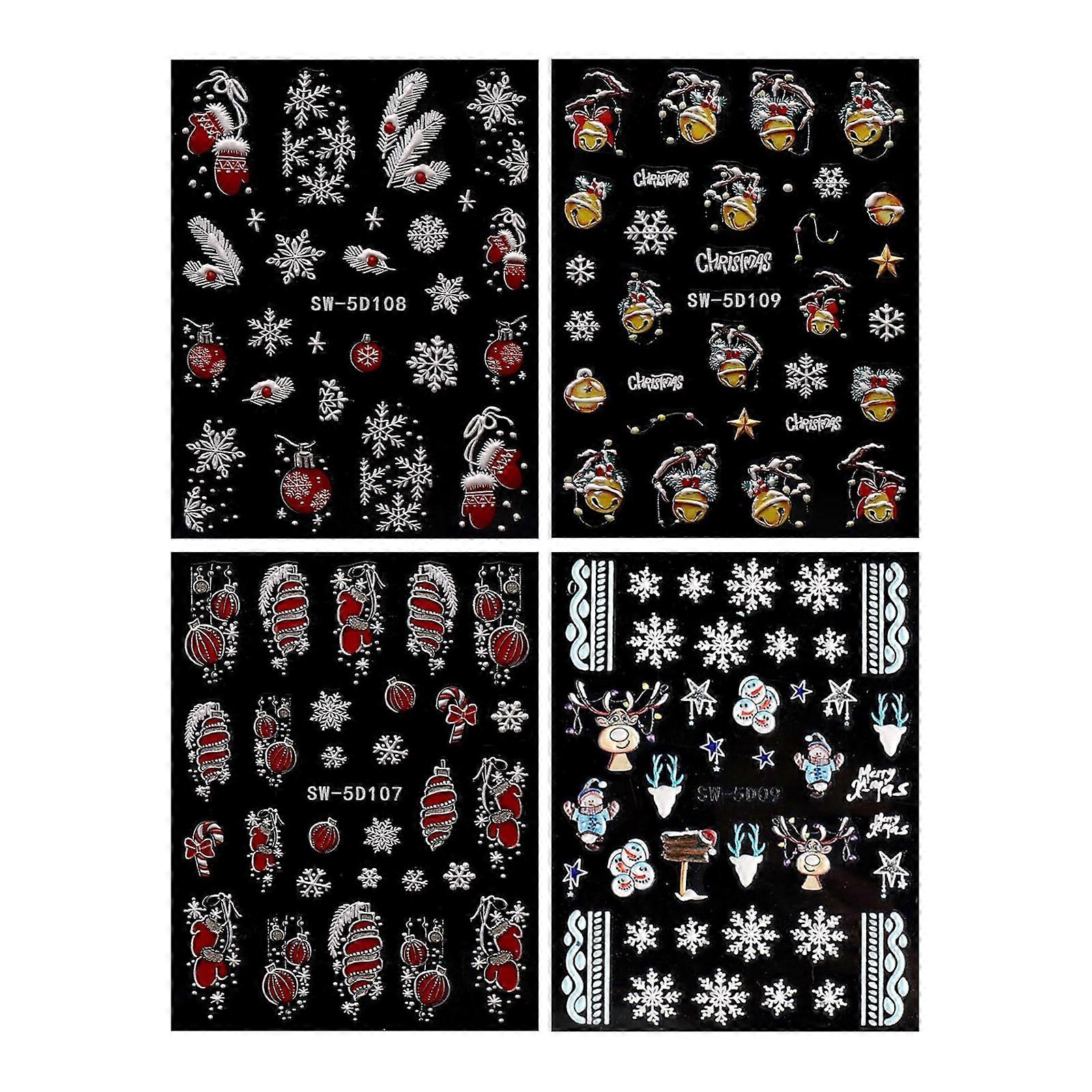 4 Sheets Christmas Nail Sticker Self-Adhesive Nail Decals Snowflake Nails Art Stickers Nails Art Decorations for Party