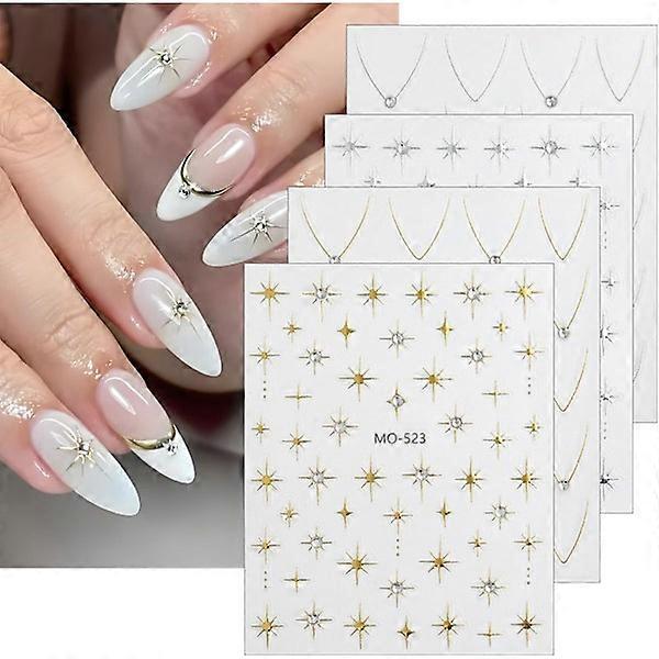 4 Sheets Star Nail Art Stickers French Nail Decals 3D Self Adhesive Nail Art Accessories Gold Silver Stars