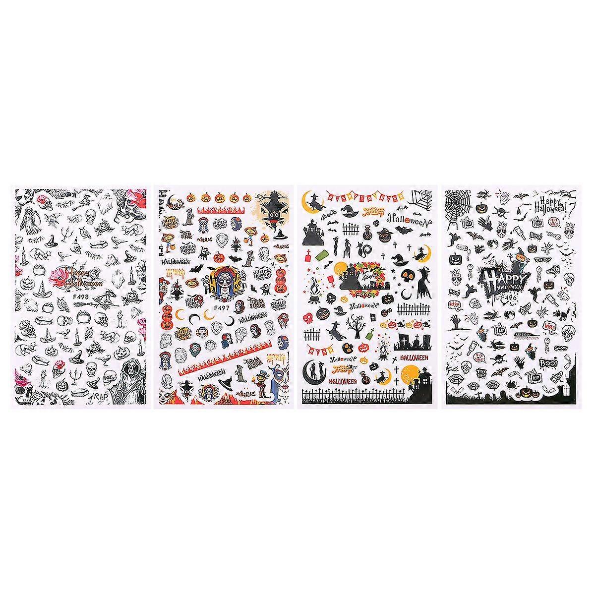 4 Sheets Halloween Nail Stickers Waterproof Manicures Stickers Nail Art Decals