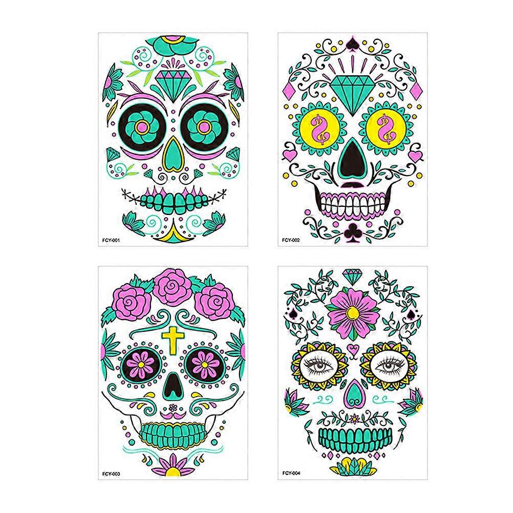 4 Sheets Halloween Tattoos Stickers Body Stickers Luminous Face Decals