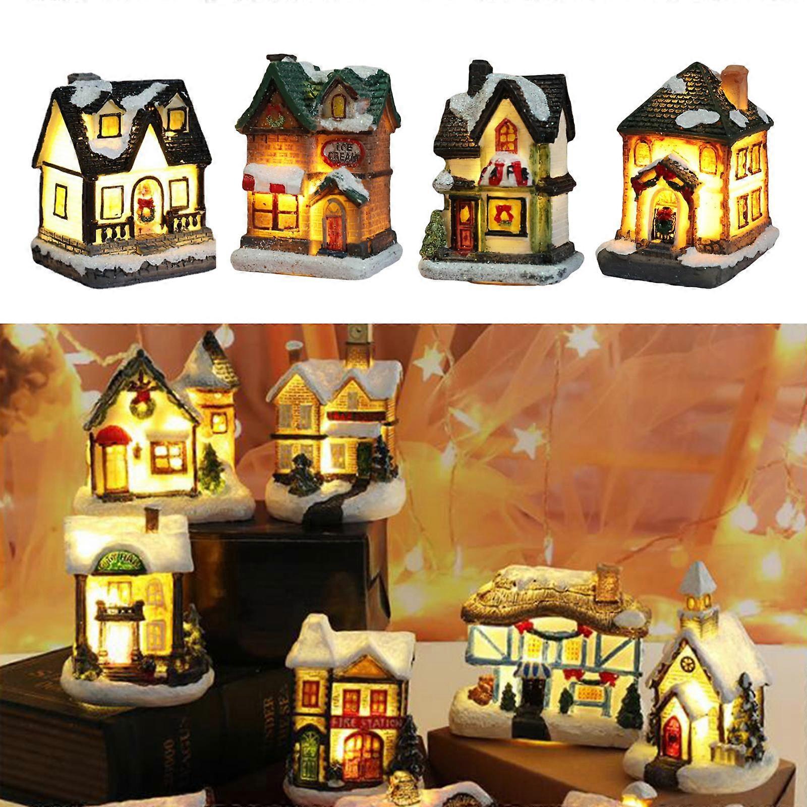 Set of 4 Resin Christmas House LED Village Dollhouse Garden Ornament Gift