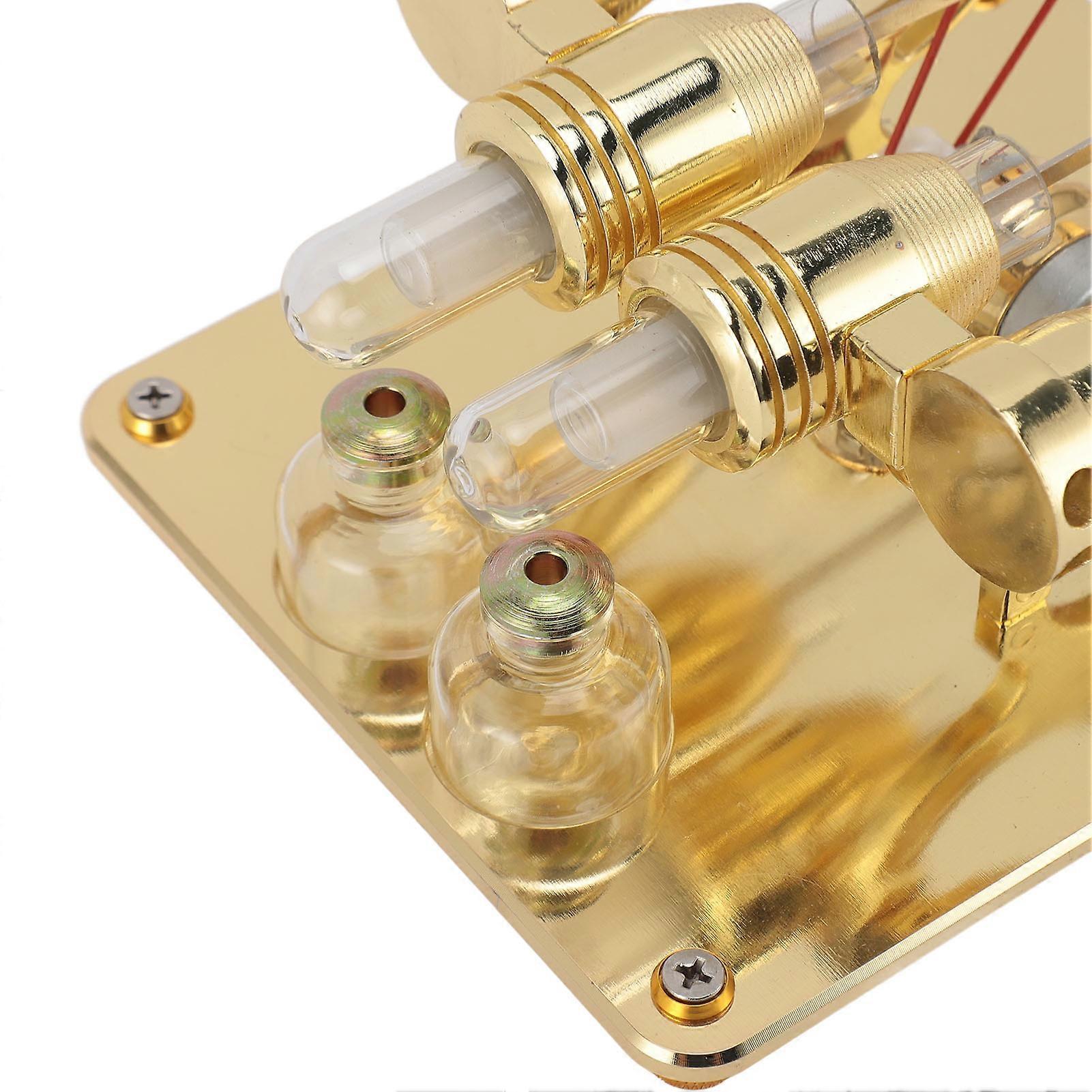 4 Cylinder Hot Air Stirling Engine DIY High Hardness LED Light Stirling Engine for Kids Students Science Project Classroom Gold