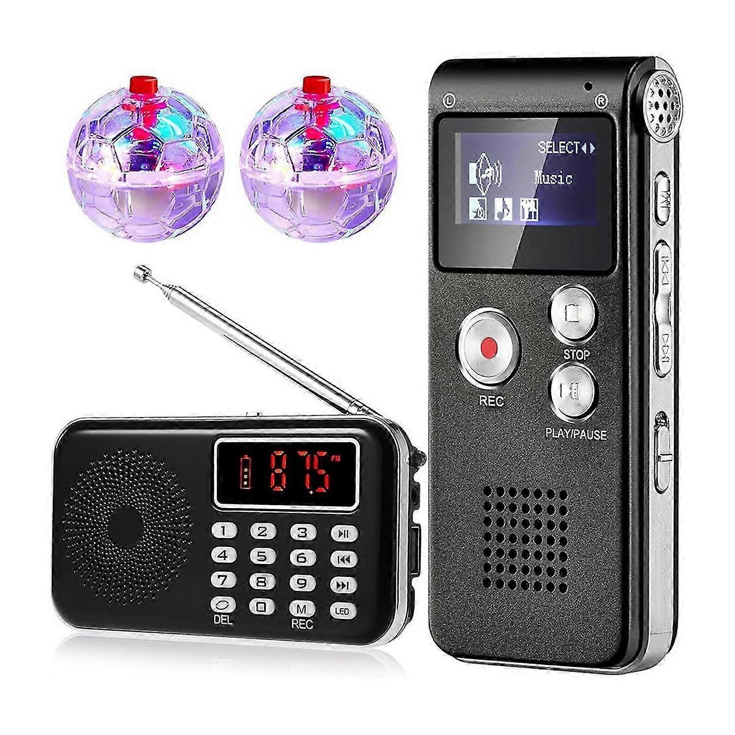 4 Pcs Equipment Kit Fm Radio with 8 Gb Digital Voice Recorders with 2 LED Light Up Cat Ball Batterie