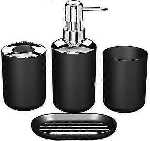 4-Piece Plastic Bathroom Set with Toothbrush Holder & Cup (Black)