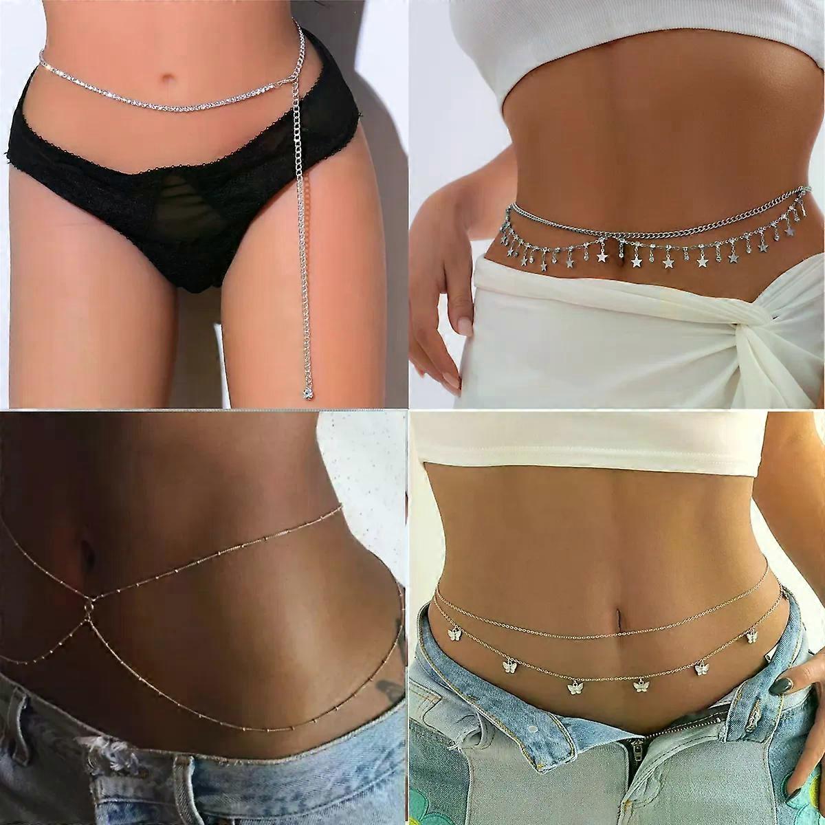 4-piece set - Five Pointed Star Layered Belly Body Chain Gold Body Chains Tassel Waist Chain Beach Bikini Body Jewelry Accessories for Women and Girls
