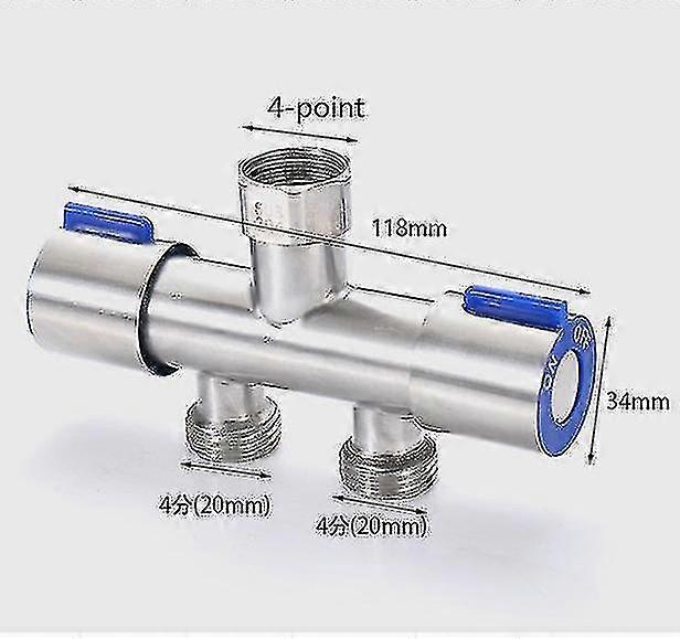 Four-point faucet three-way water diverter, 1 inlet, 2 outlets, Dual-purpose double-head, 4-way water distribution valve