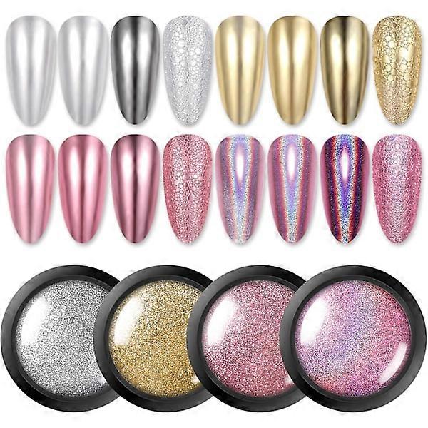 4 Jars Chrome Nail Powder Metallic Mirror Powder Holographic Pigment Powder Manicure Nail Art Decoration Set Silver Gold