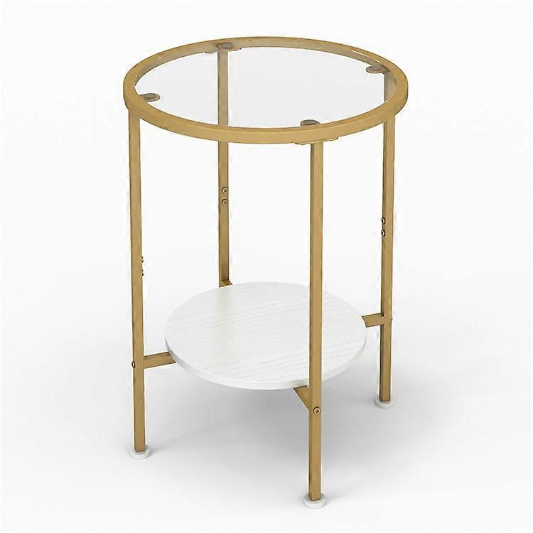 4 Leg 2 Tier Round Side Table with Glass Top End Table Modern Accent Furniture