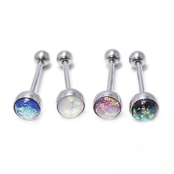 4舌リングバーベル14g合成オパールキラキラ外科用鋼のセット
