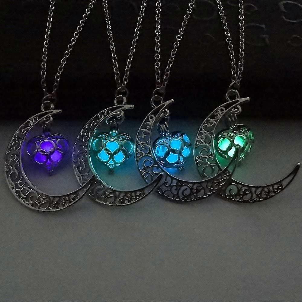 4 Colors Luminous Series Moon Love Heart Pendant Necklace Fluorescent Necklace, Glow In The Dark Necklace, Valentine's Day Gift
