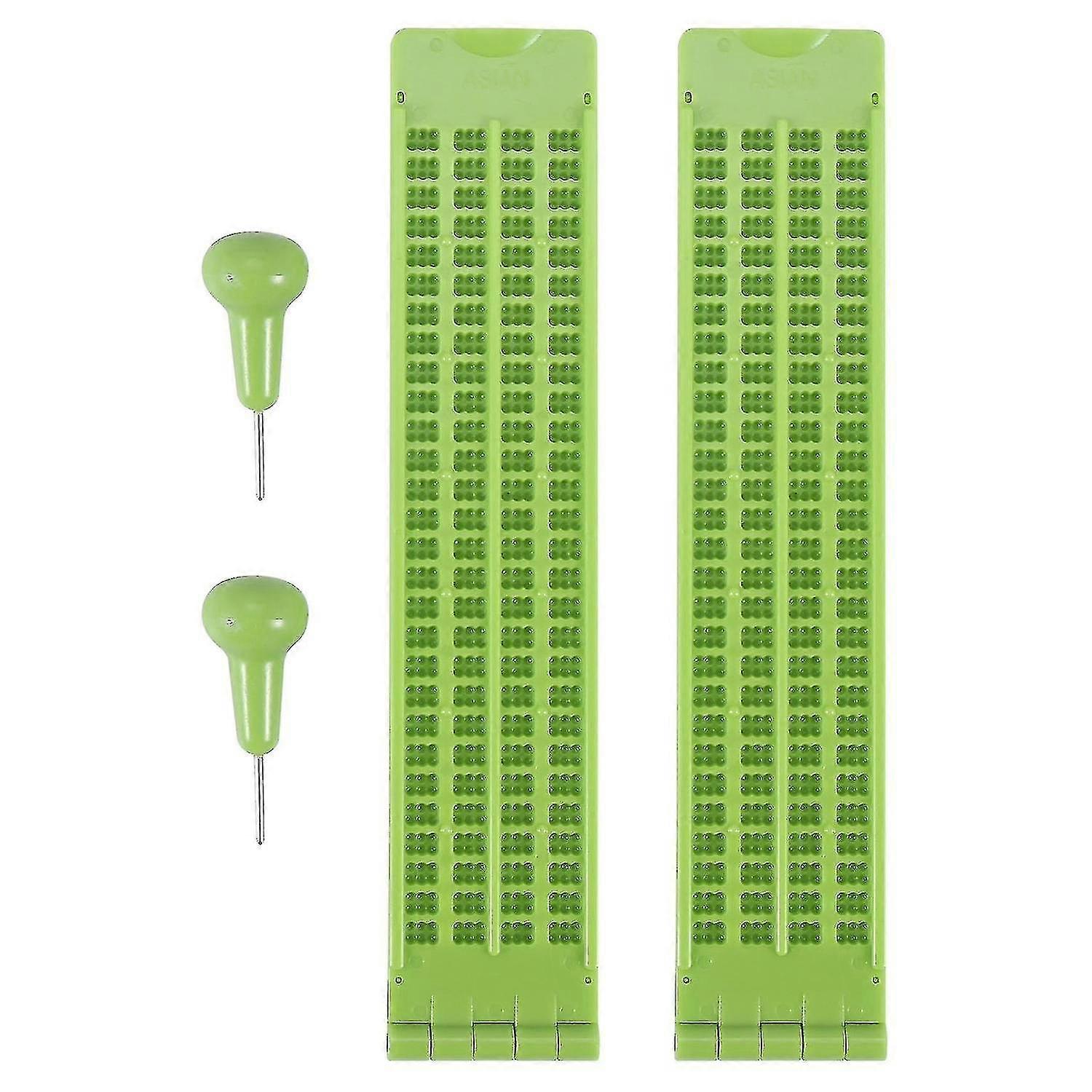 4 Lines 28 Cells Braille Slate Braille Writing Slate Plastic Braille Slate Kit, Green (2)