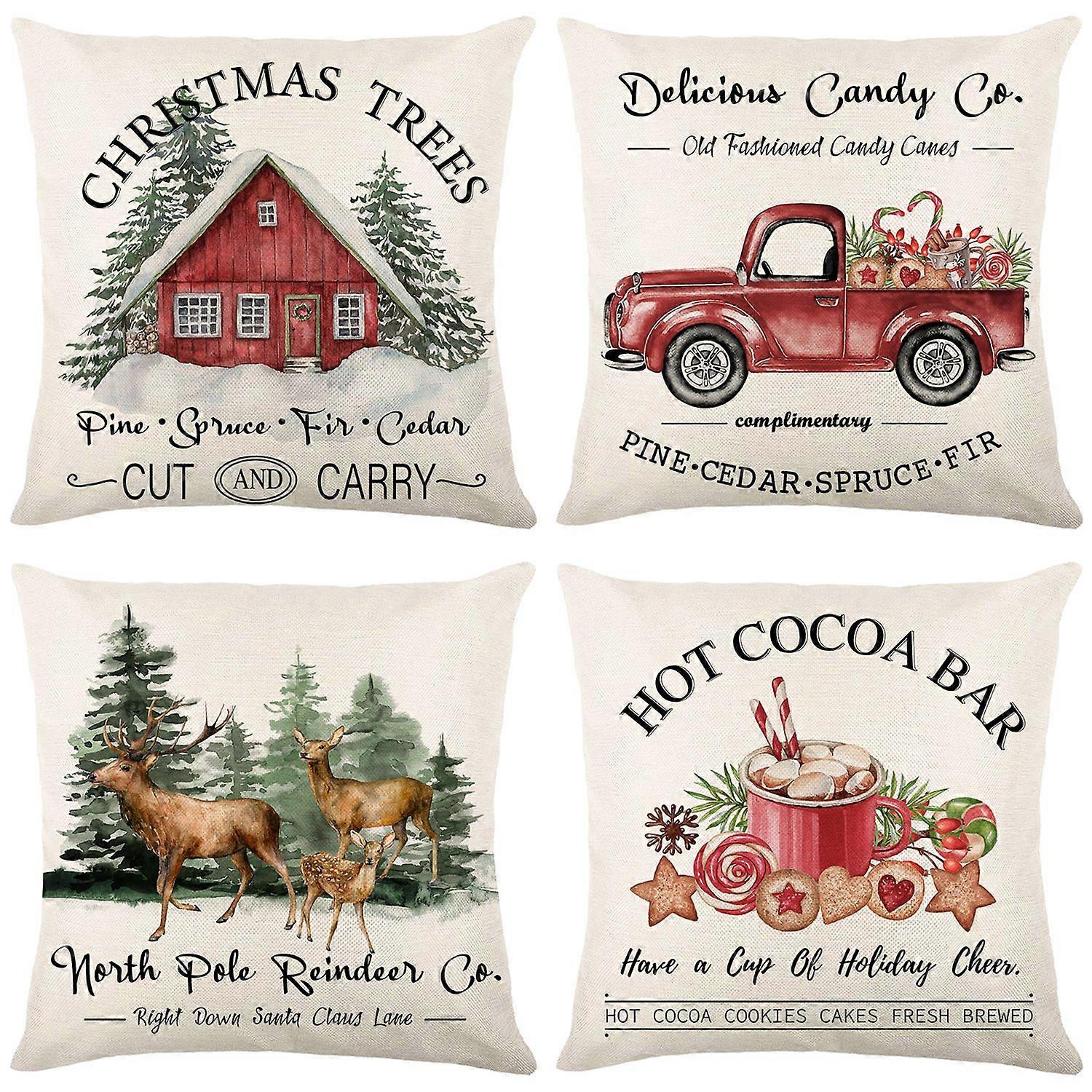 4* Christmas elk print pillow cover home living room sofa cushion cover Christmas tree elk pillow