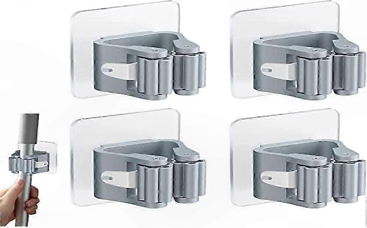 4-Pack Broom Clips, Wall-Mounted Mop Organizer with Hooks for Kitchen, Bathroom, and Garden Storage Solutions