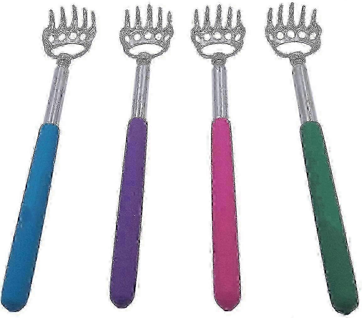 (4-Pack) Extendable Telescopic Back Scratcher - Portable Metal Bear Claw Back Scratcher with Rubber Handle for Hand Massage & Back Slap