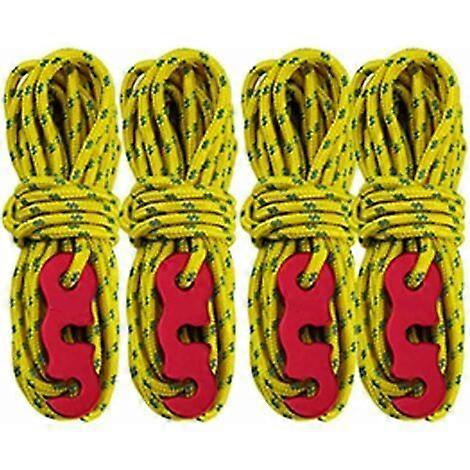4 Pack 4mm Reflective Guy Lines with Aluminum Adjusters for Camping (Yellow)