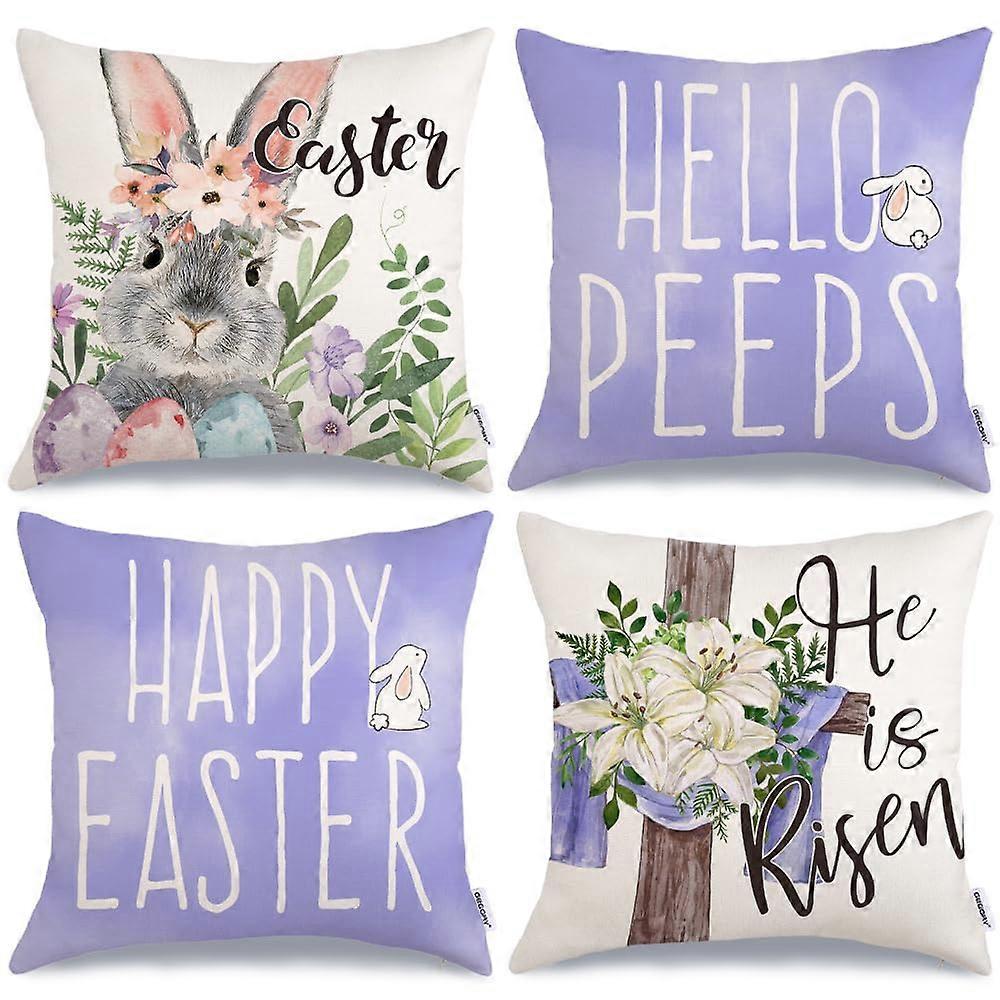 4 Floral Bunny Pillow Covers 18x18 Inch Sofa Decor "Hello Peeps" "He is Risen" Spring Easter Throw Pillow Cases