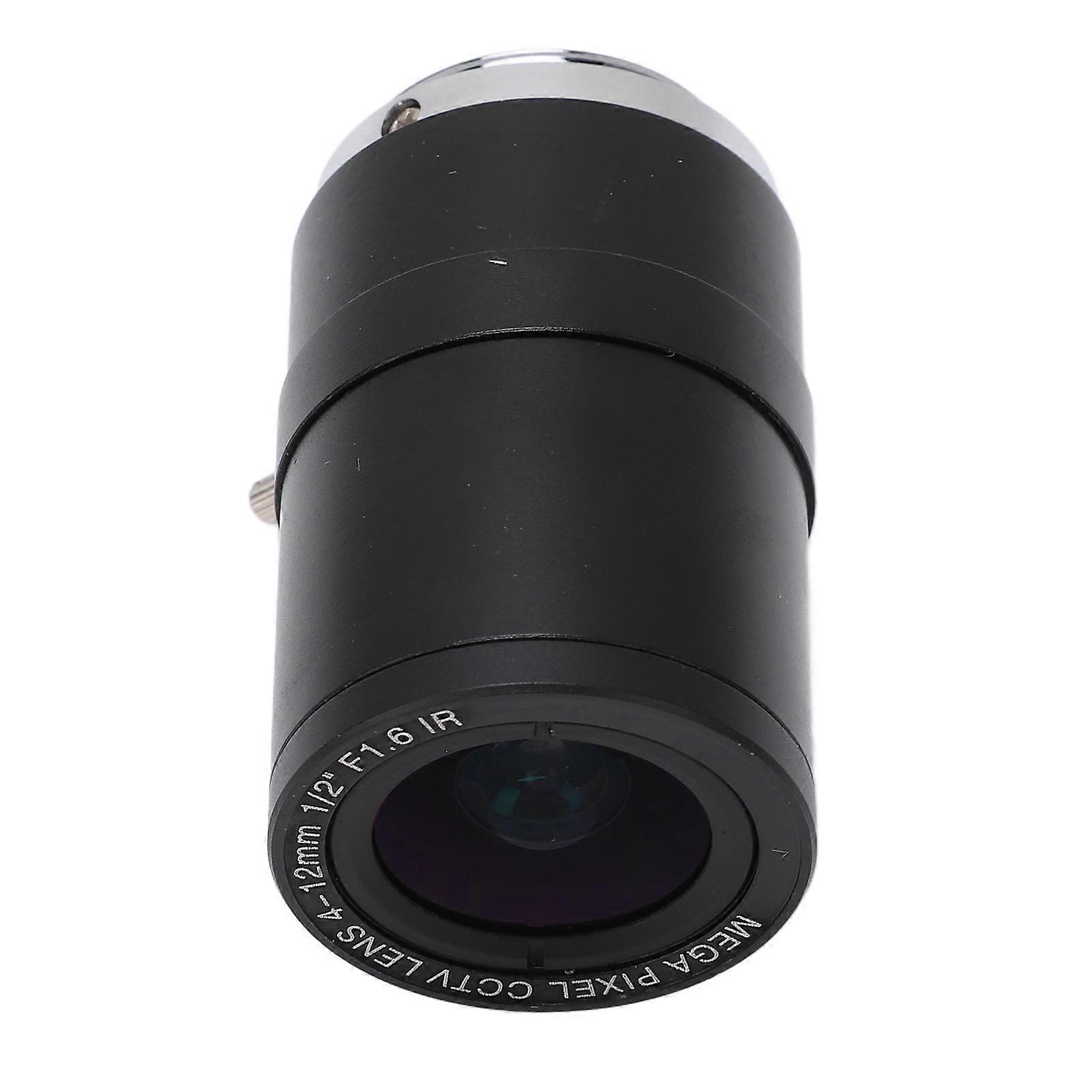 MP Camera Lens 4mm to 12mm Focal Length Manual Focus Zoom High Definition for Industrial Camera Item Type: Camera Lens Material: Aluminum Alloy Focal Length: Approx. 4-12mm Resolution: MP Aperture (F): 1.6 Mounting Port: CS Format Cover: 1/2in Horizontal Viewing Angle: 97.6-33.3° Minimum Object Size: 0.3m Size: Approx. 32x49.5mm / 1.26x1.95in (L x D) Iris: Manual Zoom: Manual Focus: Manual