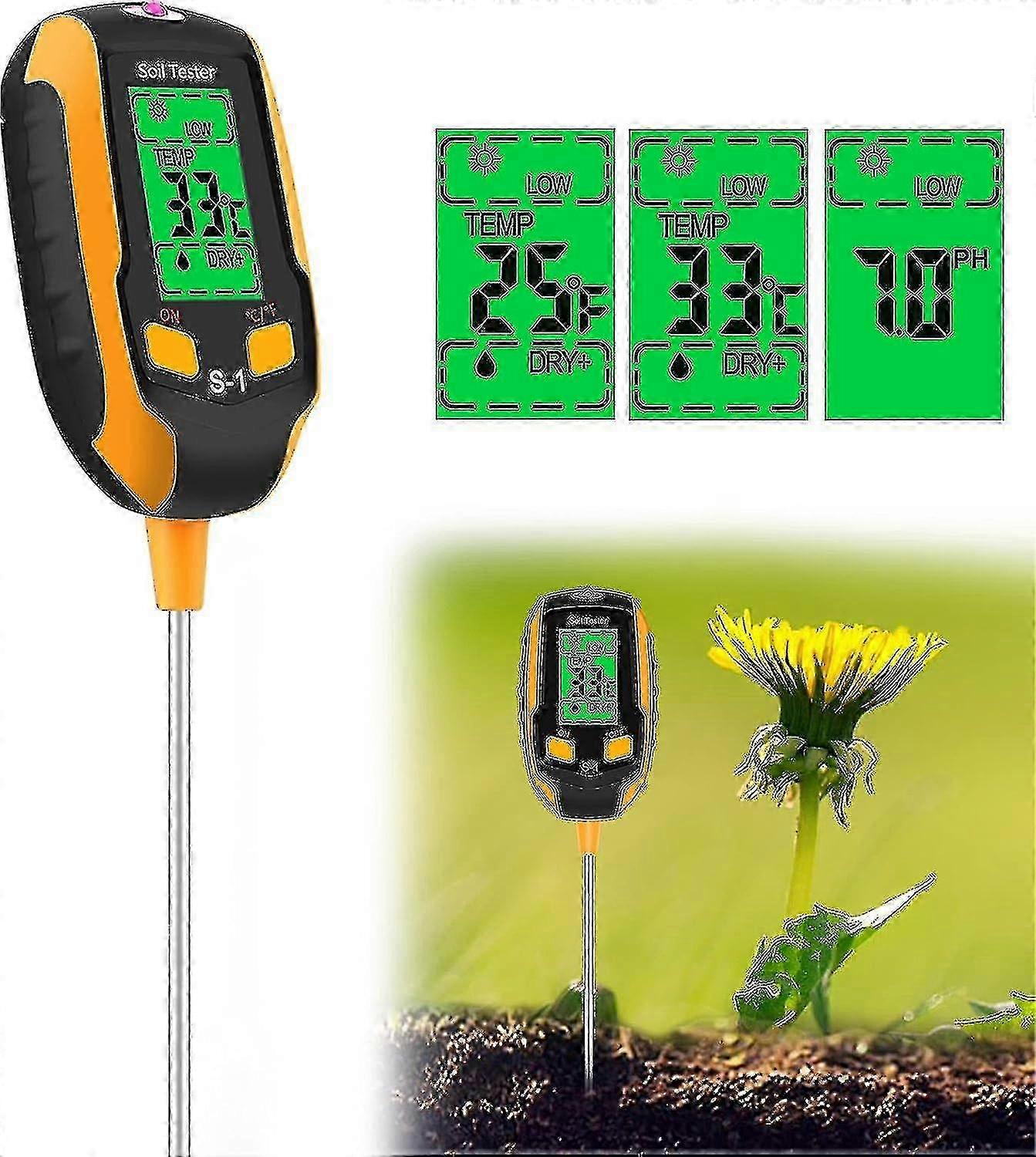 Four-in-One Soil pH Meter (S1) with Light, pH, and Temperature, Digital Plant Thermometer for Gardening in Europe