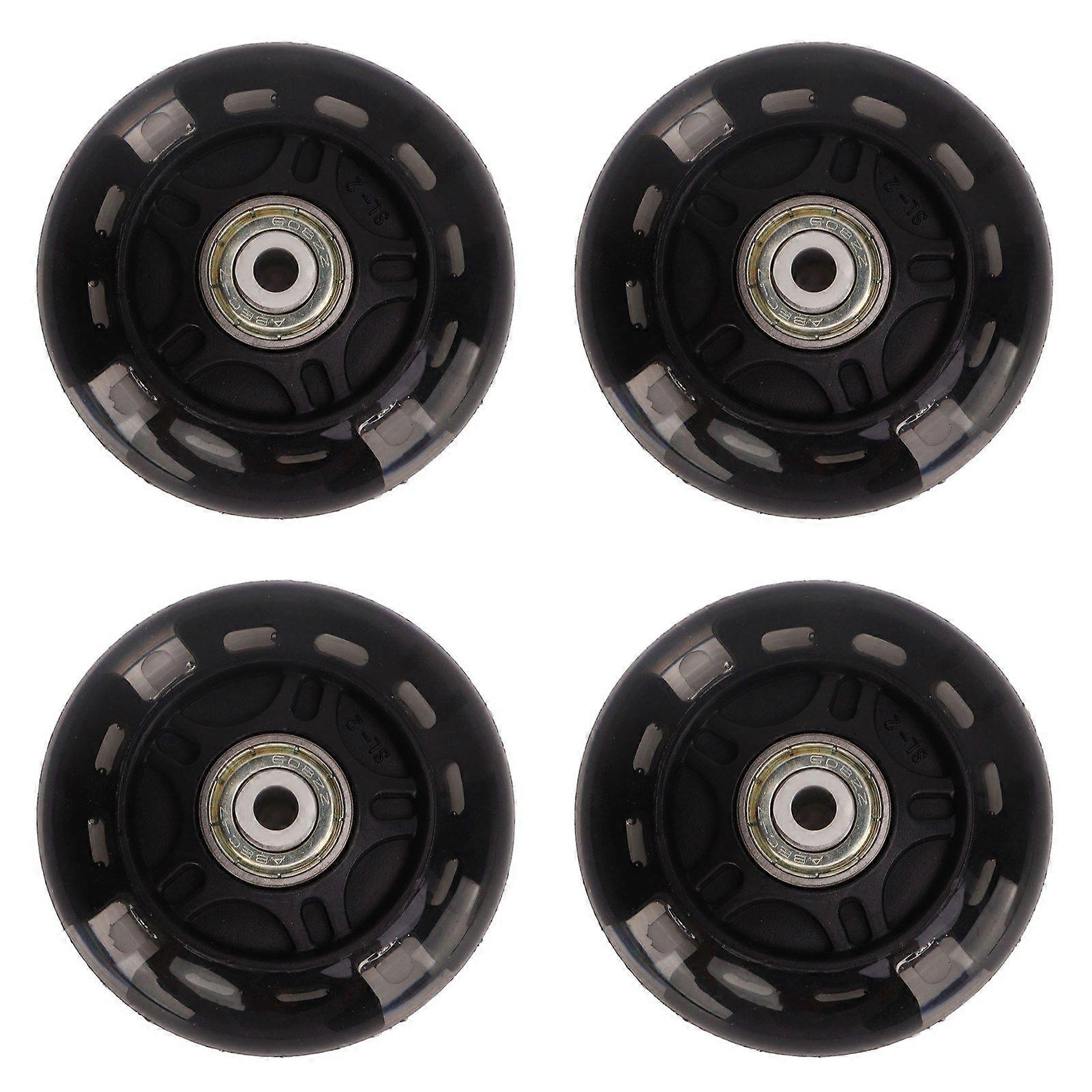 Feature:1. Good Shock Absorption Effect: This skate wheel has good shock absorption effect, strong grip, not easy to slip, safe and use with confidence.2. Flashing Wheels: Use the flashing skate wheels to make you look cool and stylish while skating at night and giving you even more fun.3. Quiet: This wheel uses ultra quiet, which greatly reduces the noise, and has good comfort performance, giving you a perfect skating experience.4. Replacement Parts: This wheel can be used as a replacement part for skates to replace the damaged original parts, and it is easy to install.5. Multi Usage: Fits most inline skateboards, casters and even luggage, perfect for daily practice, leisure, art skating and hockey skating, very convenient and practical.Specification:Item Type: Skate WheelsMaterial: PU, Rubber, SteelGross Weight: 371g / 13.1ozColor: BlackProduct Diameter: Approx.69mm / 2.7inApplicable: for skates inline pulley, etc..Package List:4 x WheelNote:1. White plastic spacer is suitable for 6mm shafts, but if you pull it out, the wheel is suitable for 8mm shafts. 2. Due to manual measurement, please allow an error of 13mm. Please make sure you don't mind before ordering.3. Due to different shooting lights and differences between monitors, the picture may not reflect the actual color of the object. Please make sure you don't mind before ordering, thank you!