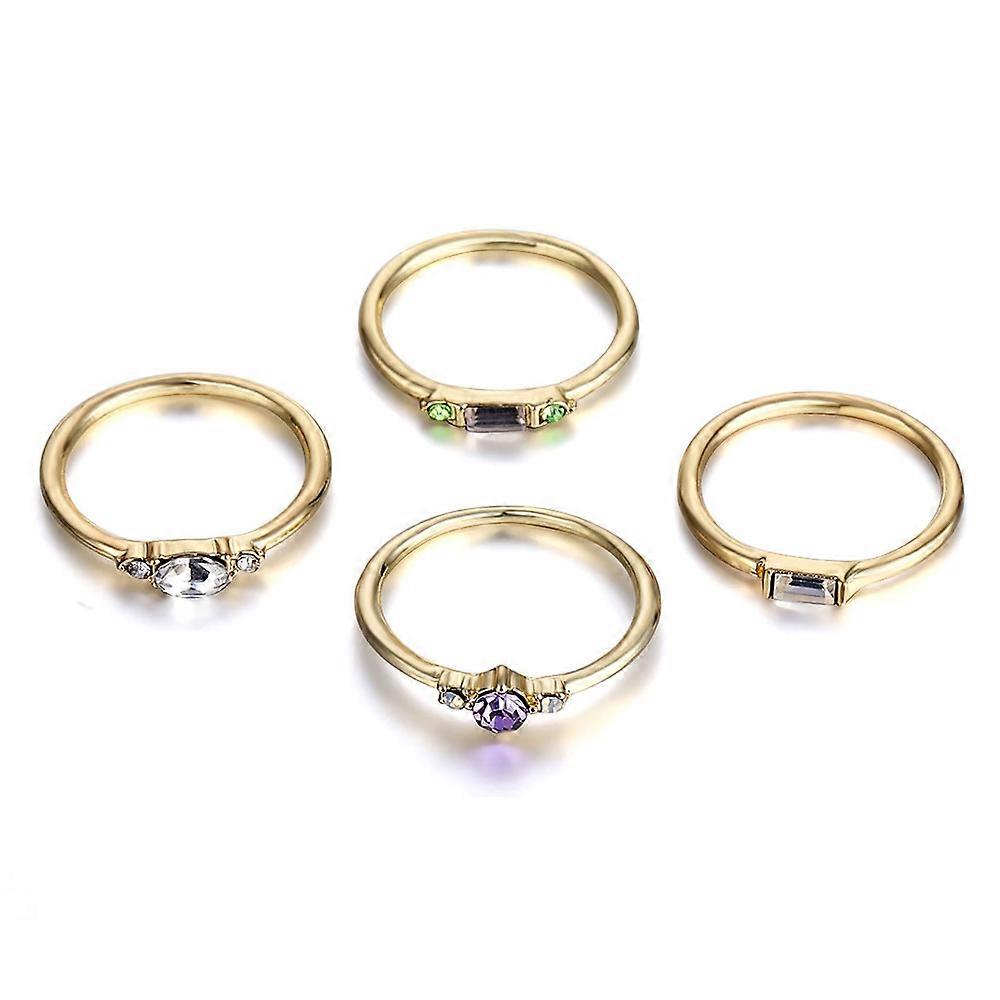 4 PCS Women Vintage Bohemian Crystal Zircon Ring Set 9