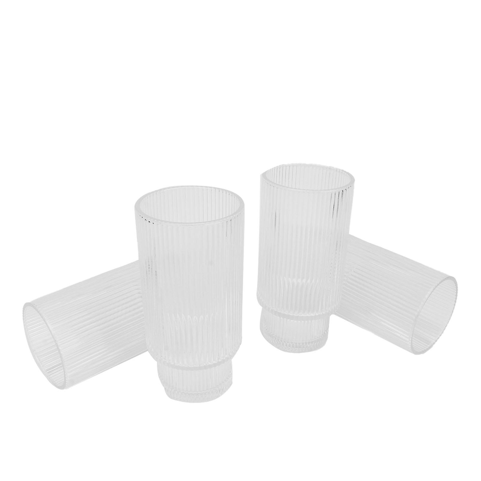 4 PCS Vintage Tall 16oz Drinking Glasses Set with Straws & Bamboo Covers