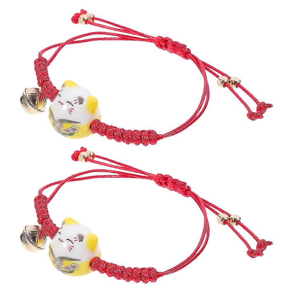 4 Pcs Adjustable Cat Maneki Neko Bracelet For Couples And Friends Multi Color Rope Design Featuring Protection Function