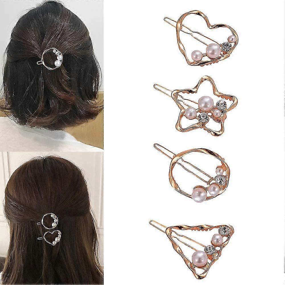 4 Pcs/set Heart-shaped Round Metal Hair Clip Pentagram Geometric Pearl Hair Clip Bangs Clip Ponytail Hair Accessories For Ladies And Girls