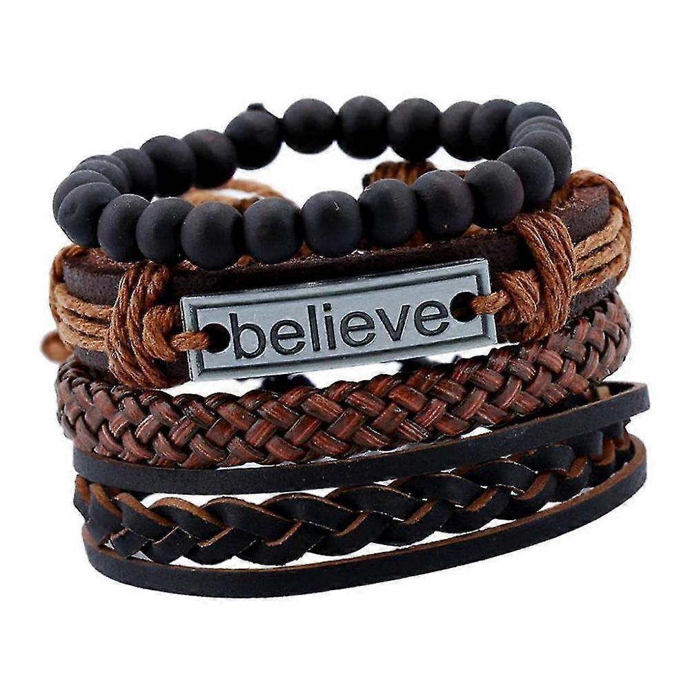 Package includes 4 pieces bracelets. Fashion and punk style jewelry bracelet set for both men and women.Made of high quality PU leather, rope and alloy, soft and comfortable to wear.Diameter is about 6cm/2.36 inch; Length 17-18cm/6.7-7.08 inch; the adjust the length.Simple and classic design with carved BELIEVE letters, suitable for personal wearing such as vintage style, punk, religious, rock band, party, travelling, daily casual wear, etc.Good Choice for Any Present Giving Occasion, send for your beloved Boyfriend, Husband or Just as a Surprise to some male friends you had a crush.Package Includes:4 Pieces/Set Braided Leather Beads BraceletNote:Please allow 1-3mm differs due to manual measurement. (1 inch = 25.4mm)Product color may vary slightly from what appears online due to differences.