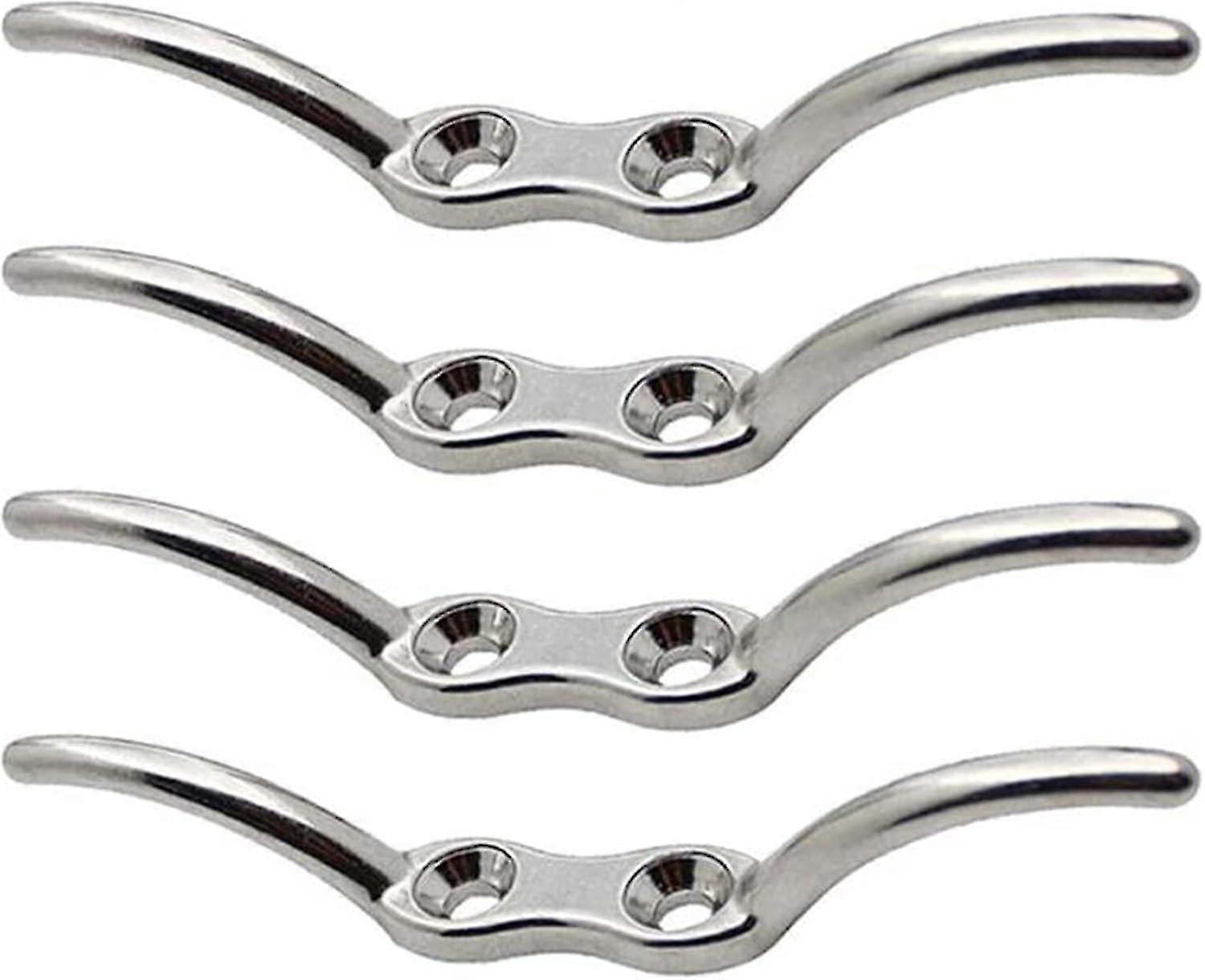 4 Pieces Cleat Hook Mooring Cleats Mast Rope Hook Mooring Cleat Dock Stainless Steel Mast Rope Cleat Hook for Flagpole Boats Yacht Awnings Tarpaulins