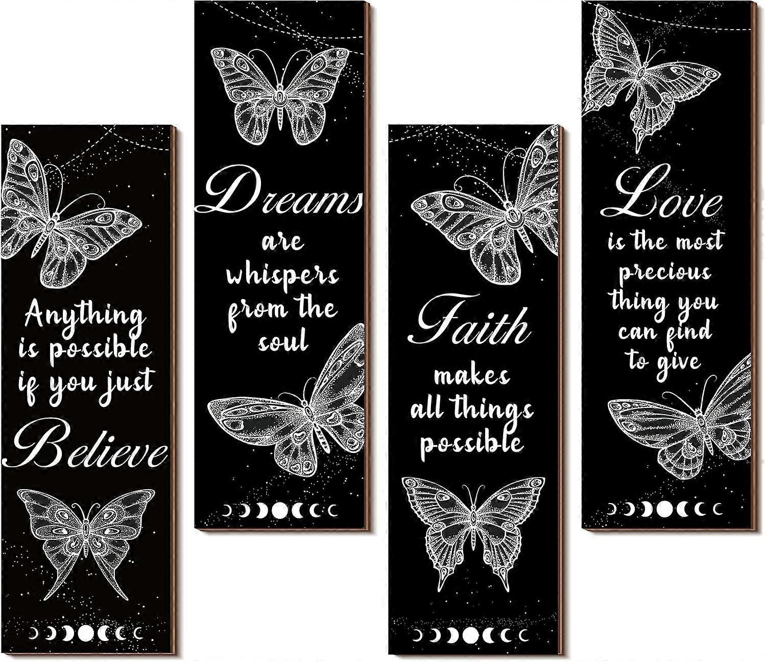 4 Pcs Butterfly Wall Decor Believe Faith Dream Love Inspirational Quote Wooden Sign Rustic Butterfly Bathroom Decor for Home Bathroom Bedroom Restroom