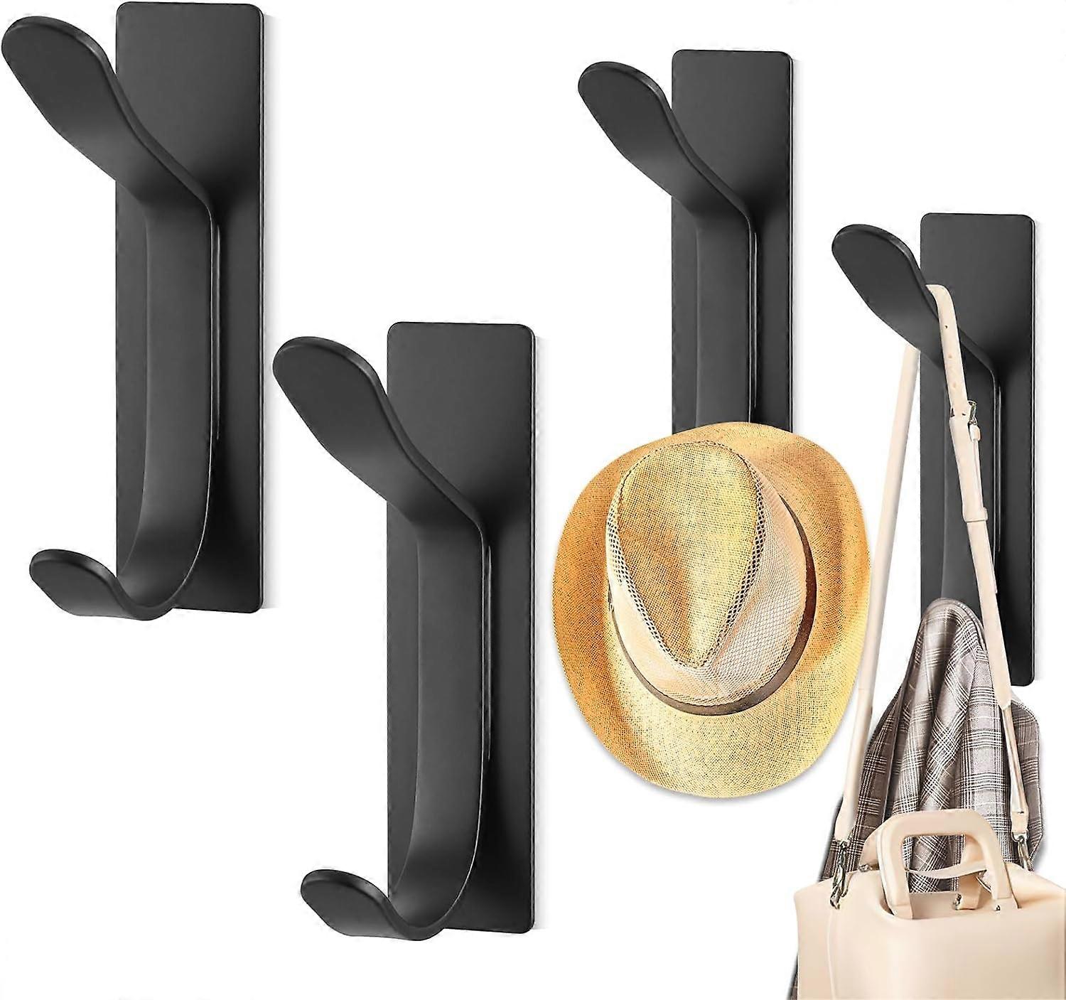 double Coat Hook Design 4Pcs Wall Mounted Coat Rack No Drilling Stainless Steel Bathroom Towel Hook Black Solid Wall Hooks