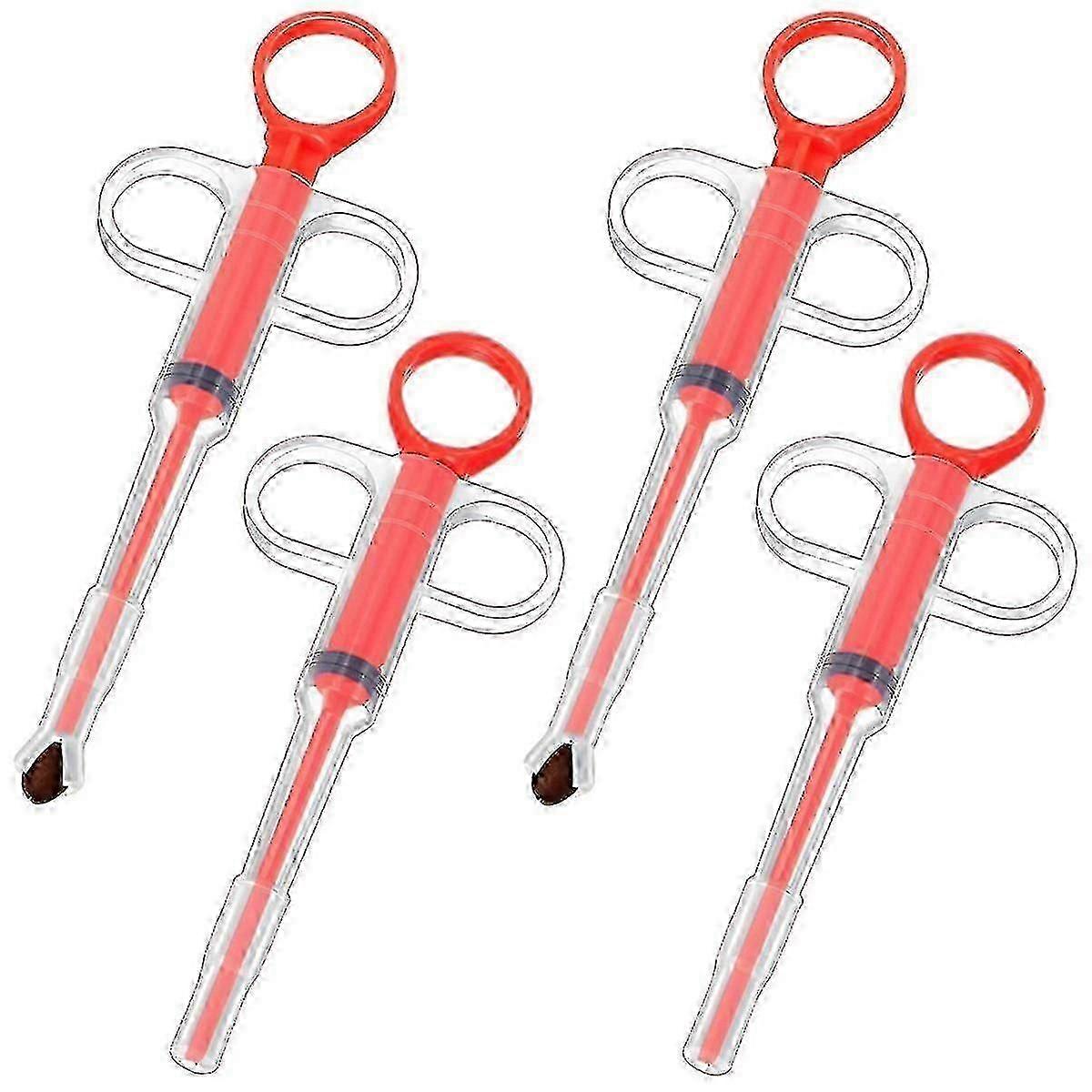 4-Pack Pet Pill Feeder with Soft Tip Feeding Tool Kit, Silicone Feeder (Red)