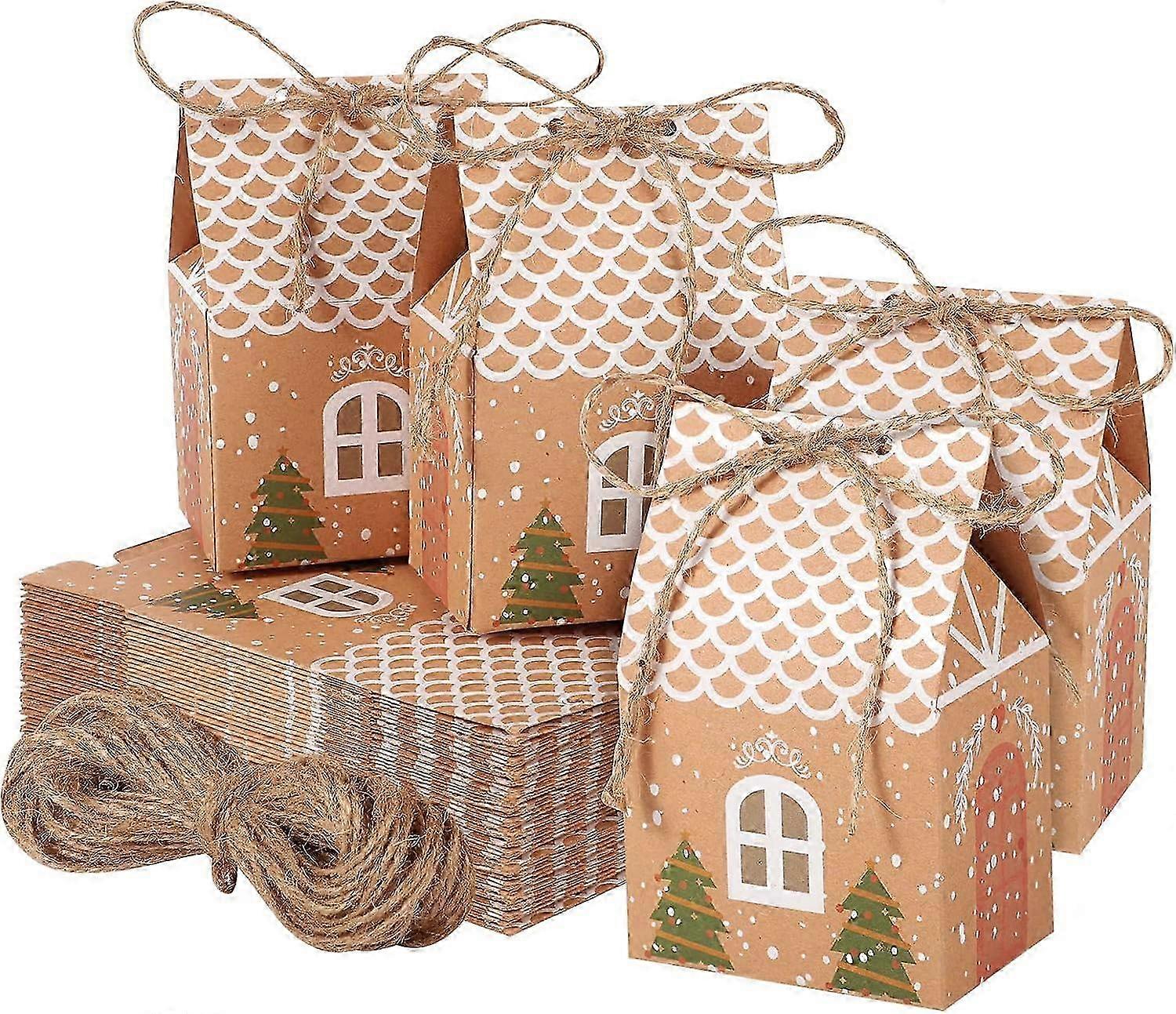 40 Christmas Party Gift Boxes Kraft Paper Candy Boxes for Boys Girls with Wrapping Decorations