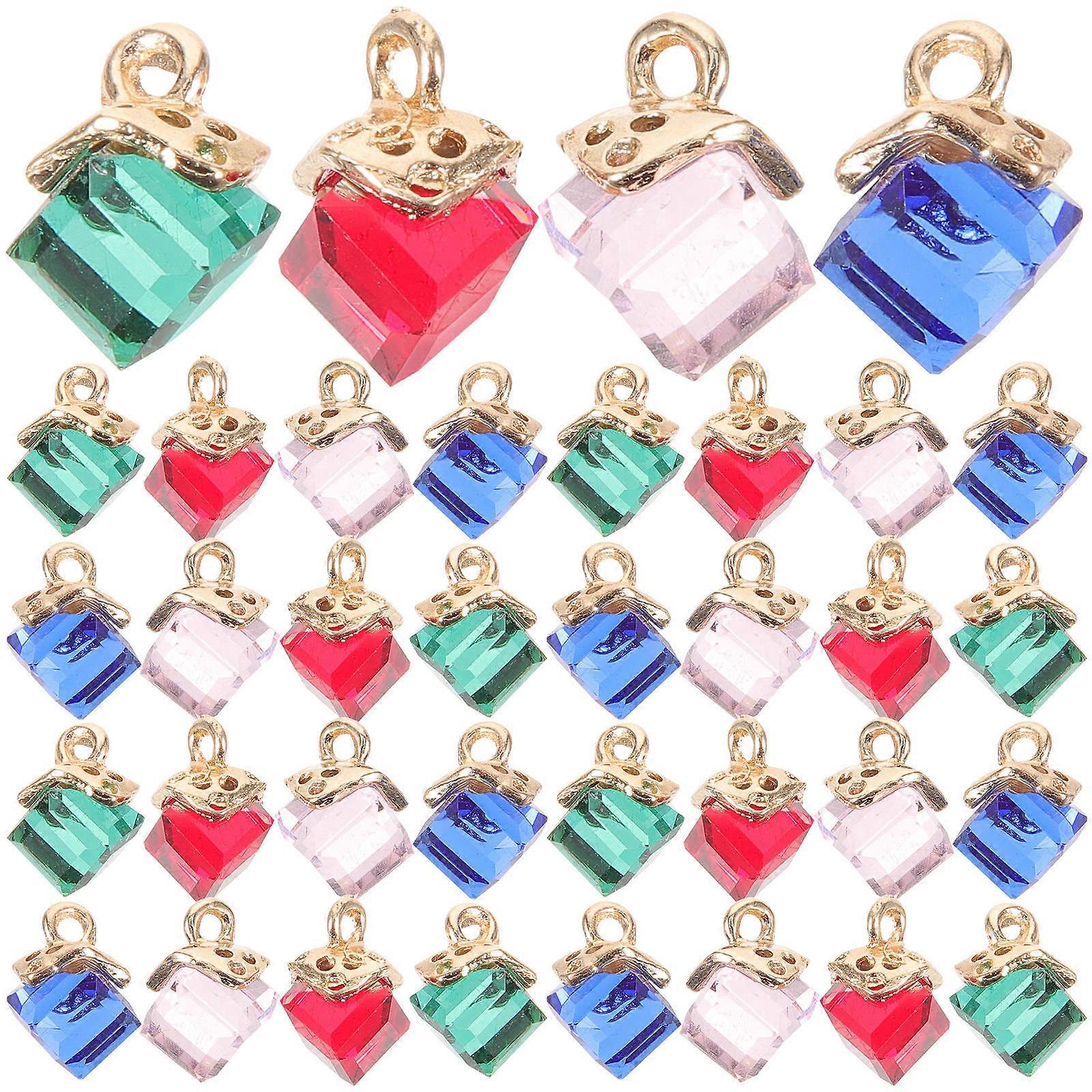 40pcs Crystal Cube Pendants, Bulk Decorative Dangle Charms for Necklace, Bracelet & Earring DIY Jewelry Making – Assorted Colors (Red, Pink, Blue,