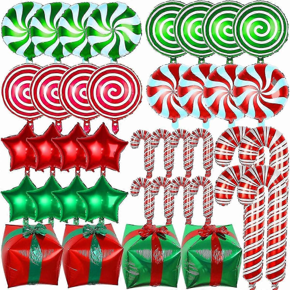 40 PCS Christmas Foil Balloons Candy Cane Balloons Christmas Red and Green Balloons Swirl Gift Box