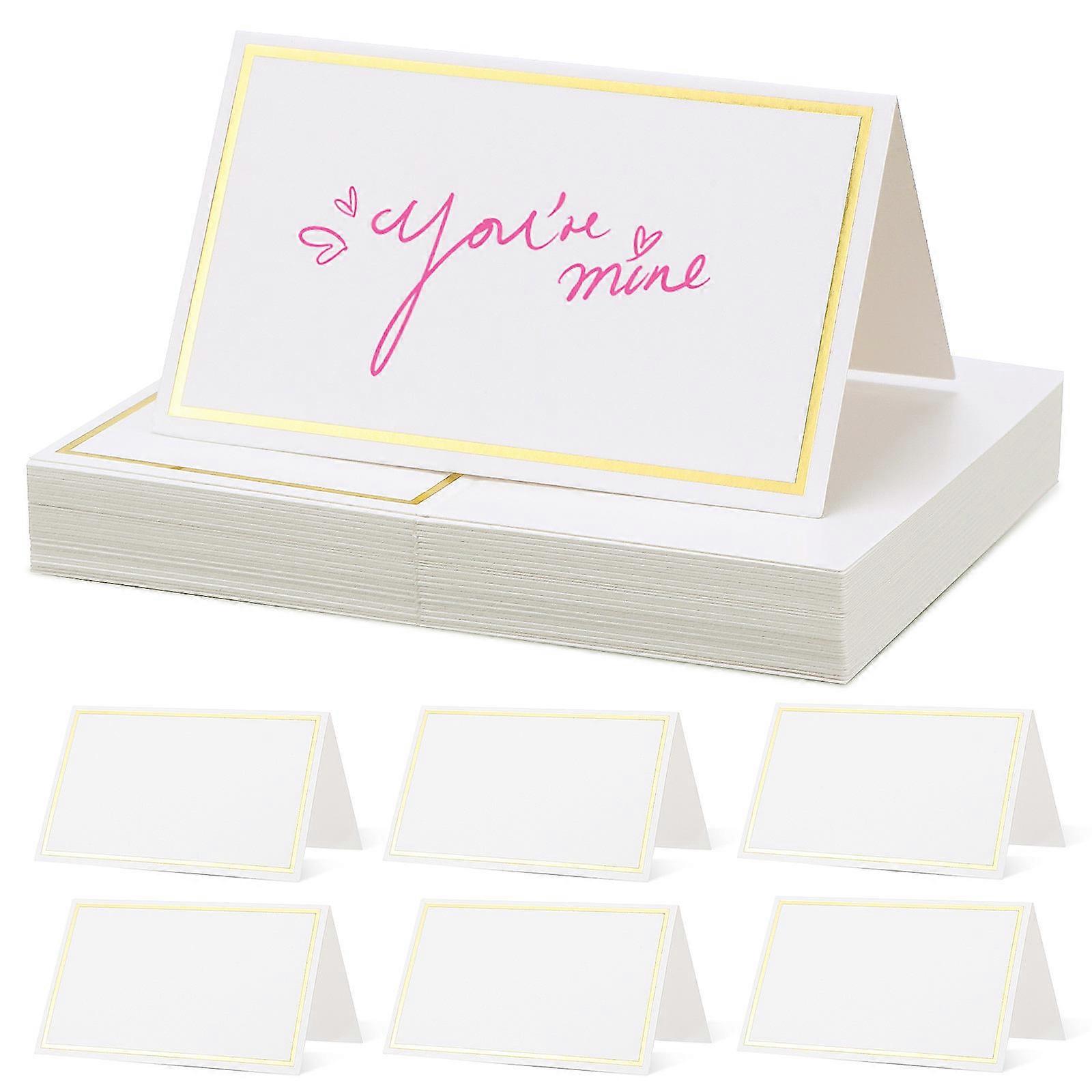 40pcs Gold Foil Border Blank Table Name Place Cards, Thick Premium Paper for Wedding Banquet, Dinner Party Food Labels and Seating Cards